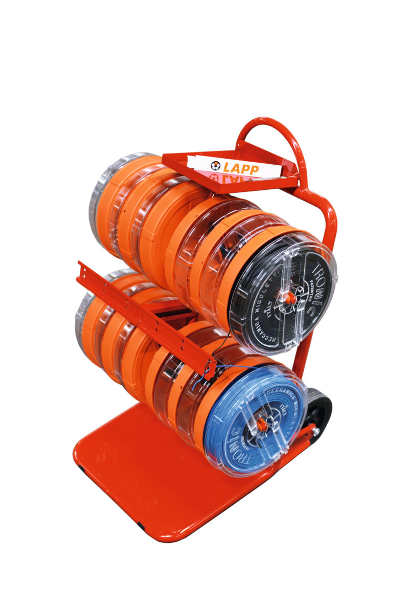 - Manuseamento e armazenamento fácil e móvel de bobinas e rolos de condutores unifilares, aumentando a segurança no trabalho e promovendo locais de trabalho organizados